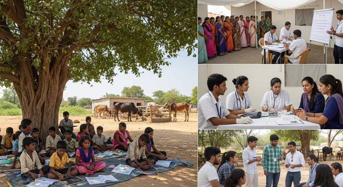 We work across education, healthcare, social development, and skill-building to empower communities comprehensively.